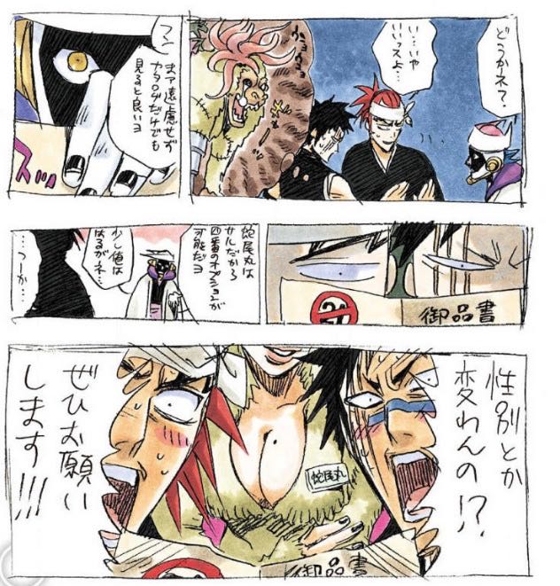 | … | 21626/03/24(火)00:23:03No.1413685438+>カラブリのギャグで「斬魄刀の性転換機能とかあるんですか!?ぜひお願いします!」とかやっちゃった後に出てきたアニオリザビ丸が思いっきり女なんだけど |
