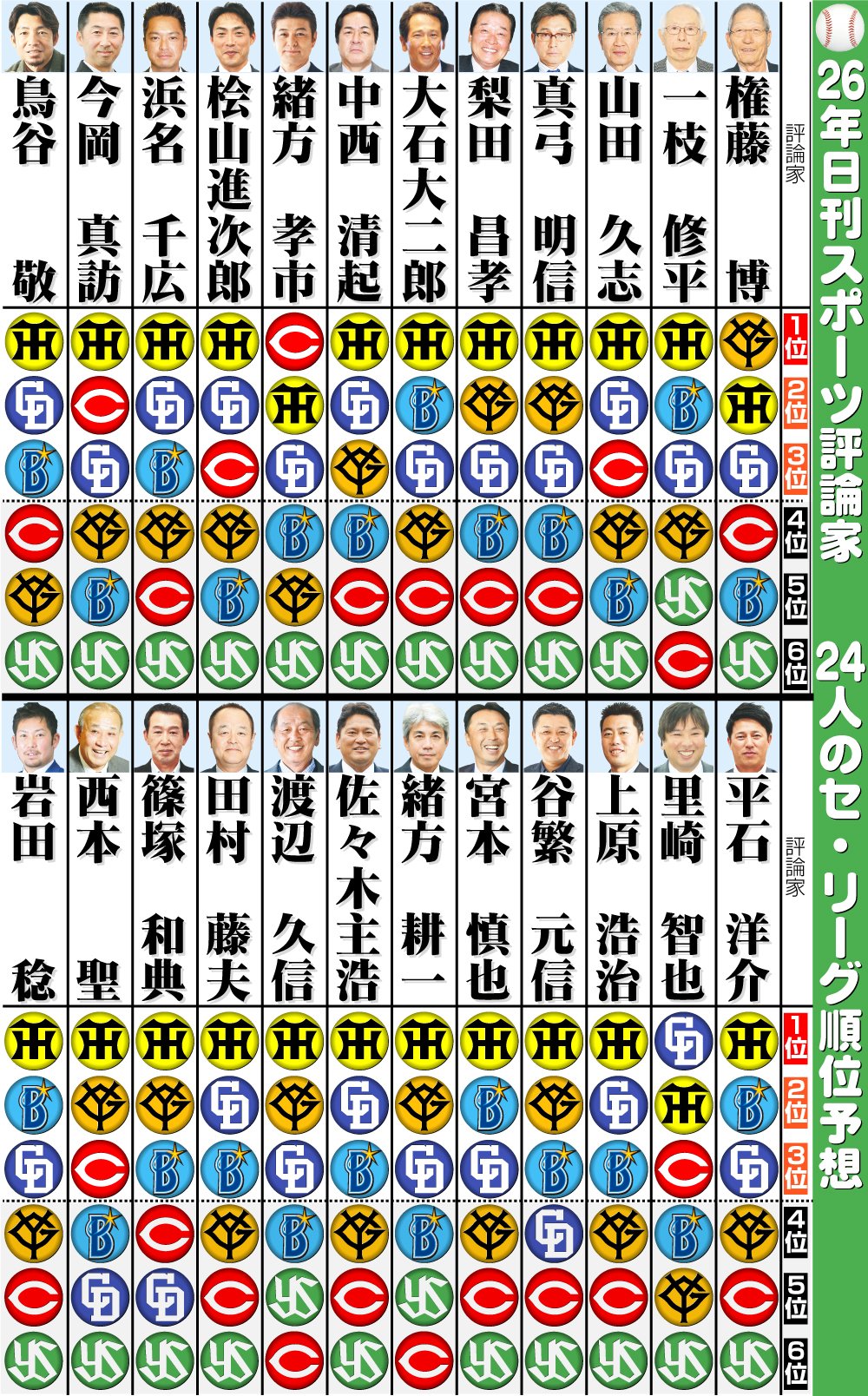 | … | 51526/03/24(火)09:57:14 ID:JVtA2oAwNo.1413737506+セ・リーグの日刊スポーツ評論家予想 |