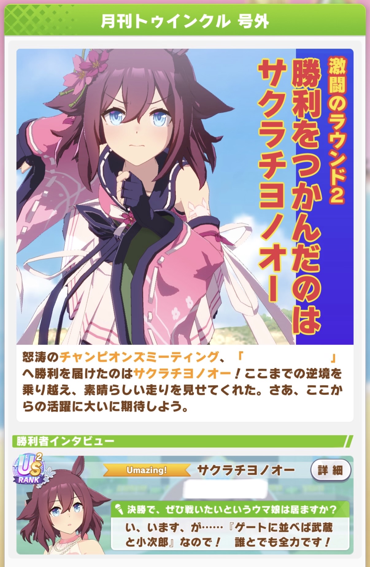 | … | 35526/03/24(火)12:32:11 ID:XX4WaCi2No.1413770056+>スマンホホの電源が勝手に落ちました >ウマ娘にとって大切な三年間をともに走り抜けた中だというのに… 瞳の先にあるゴールだけを目指さなくていいんですか? |