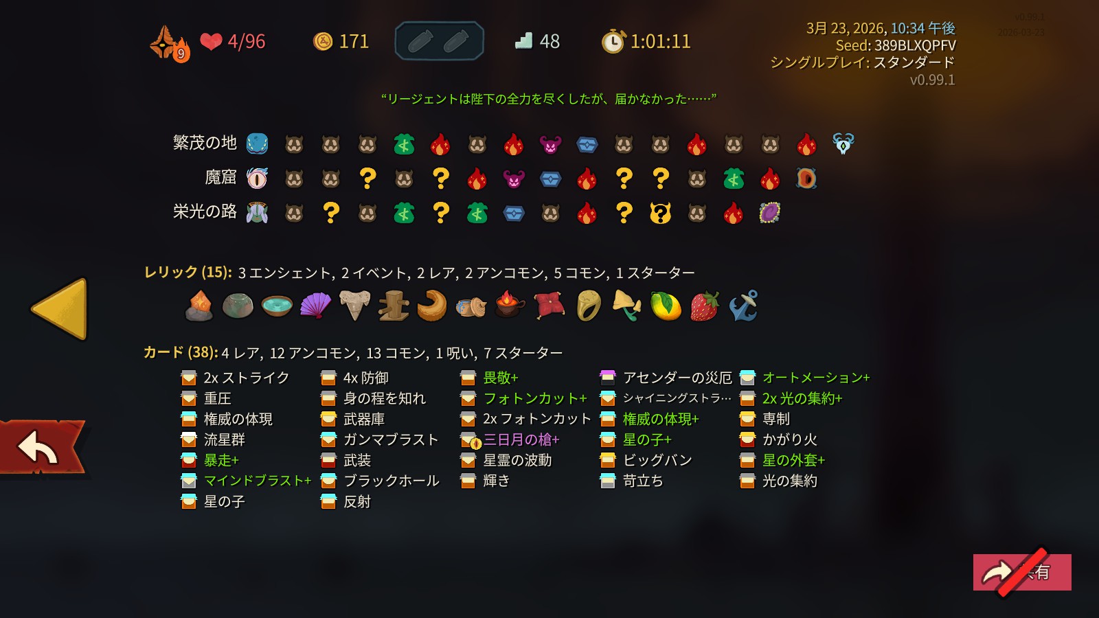 | … | 37426/03/24(火)12:24:23No.1413767412+加速引けねえなーってデッキ引いてるだけでプラズマ解放してエナジー回復したりするのいいよね |