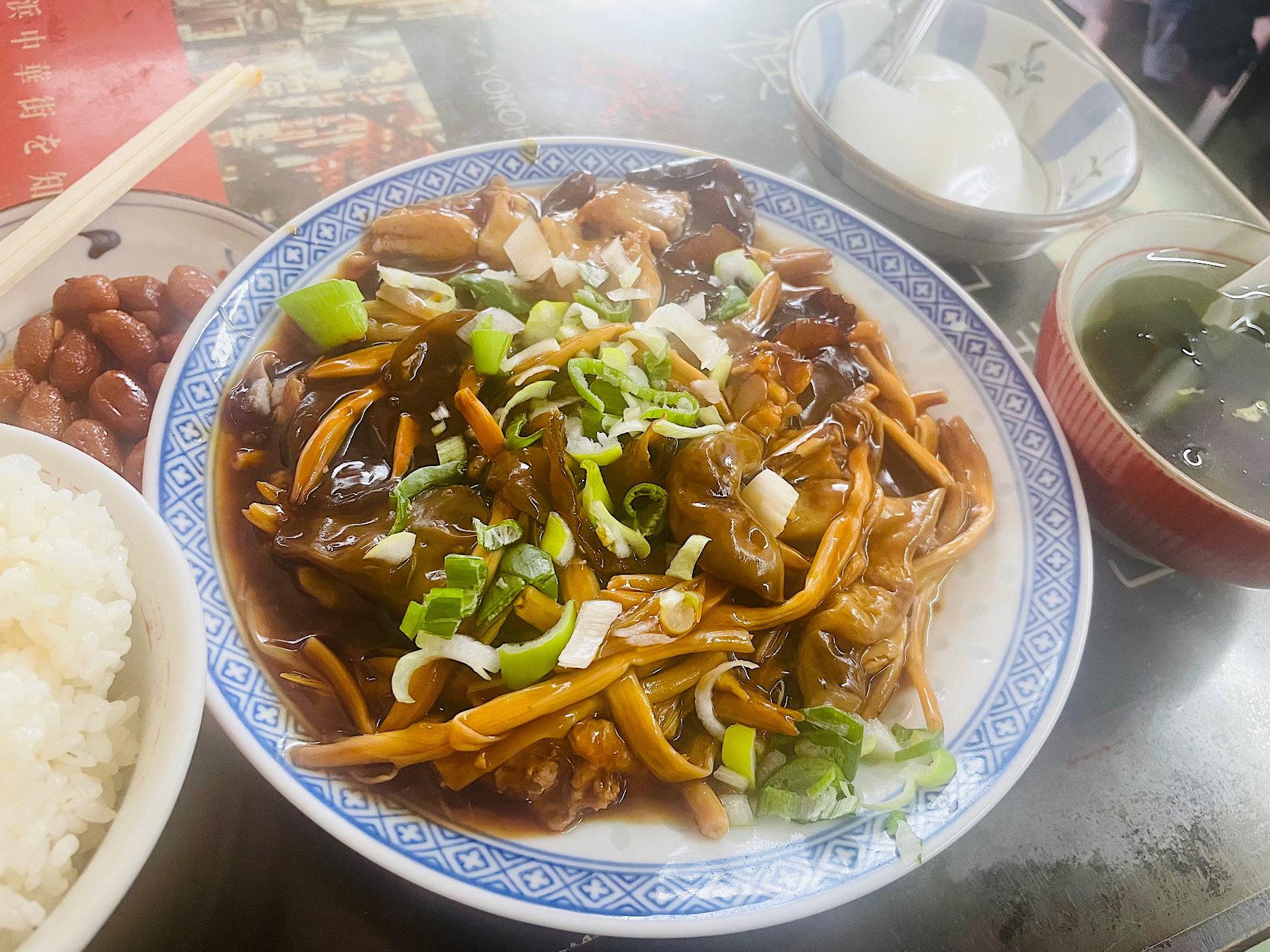 天龍菜館の骨付鶏と木耳と百合の花の煮込み定食