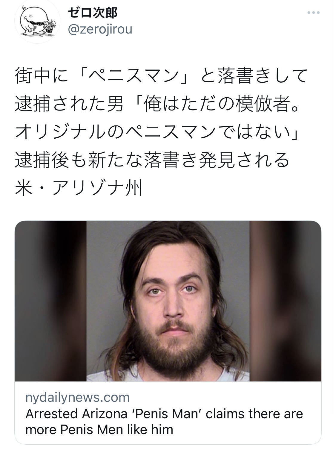 | … | 11426/03/24(火)17:30:54No.1413835532+「2019年11月からテンペ市内で『ペニスマン』と落書きして回っている人がいます。今日、コーヒーを飲みに行こうと向かったスターバックスも『ペニス化』されていました。それから、通りを挟んで向かいにある改装中の新しいビルも被害にあっていました。ペニスマンは人気者になりつつあります」 |