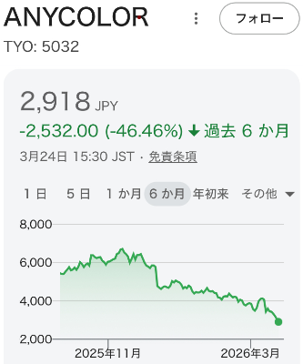 | … | 926/03/24(火)17:24:24No.1413834008そうだねx15エニーカラーの株価下げ止まらねえな… |