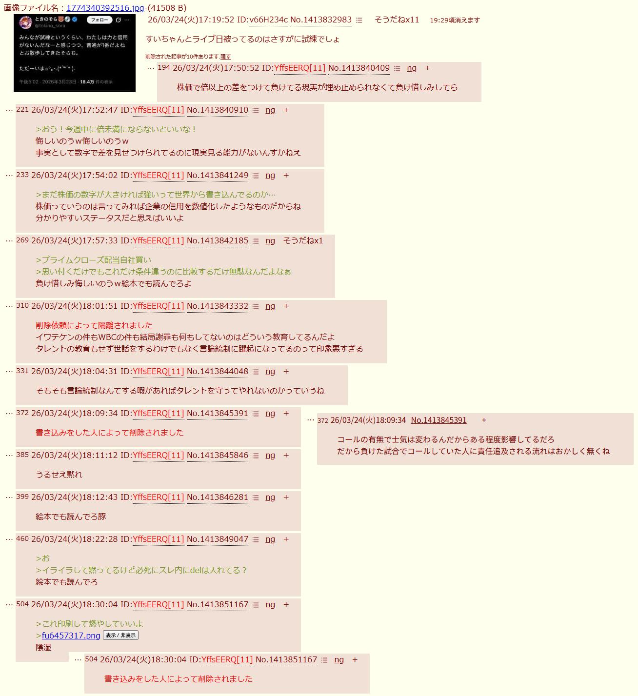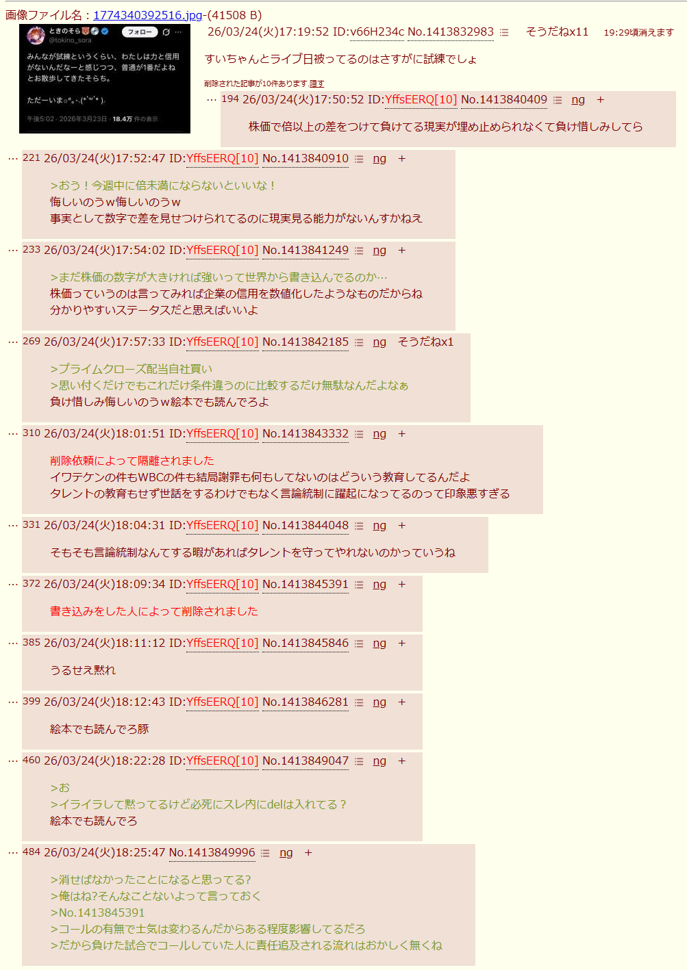 | … | 226/03/24(火)17:21:06No.1413833254そうだねx22またホロ粘着スレ |