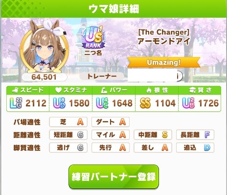 | … | 8826/03/24(火)19:26:34No.1413868573+ウインディちゃんは因子パワーはそこそこあるんだけどサポカパワーが大したことないせいで固有を継承してもSPたりないのだワハハ!! |