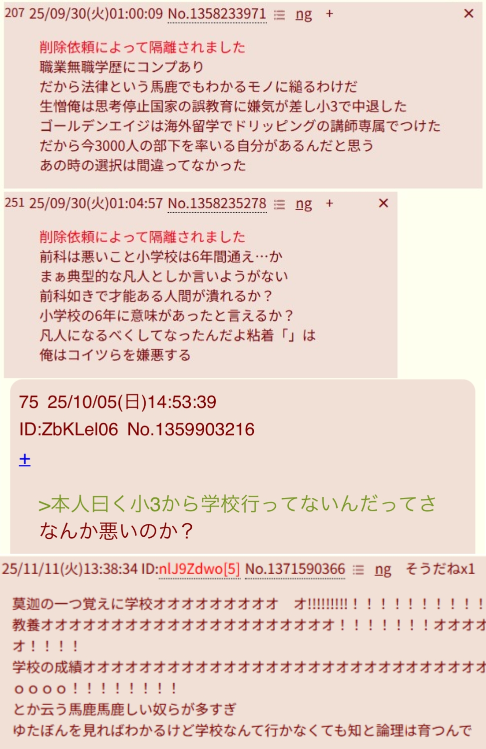 | … | 3926/03/24(火)20:21:20No.1413887511そうだねx6ゆたぼんって色々あった結果最終的に学校は行った方がいいみたいな結論になってなかった? |