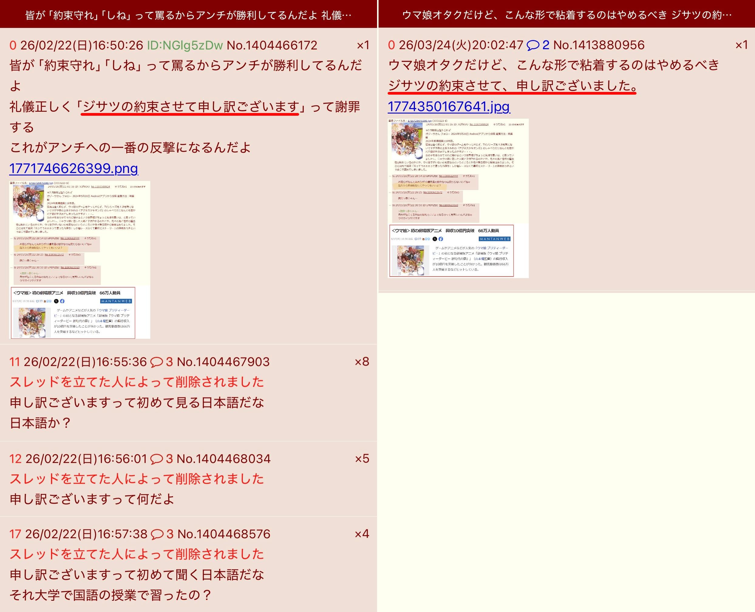 | … | 30326/03/24(火)21:06:37No.1413904372+自分の巣以外で粘着仕草していつも通りそうだね盛るのは無茶でしょ… |