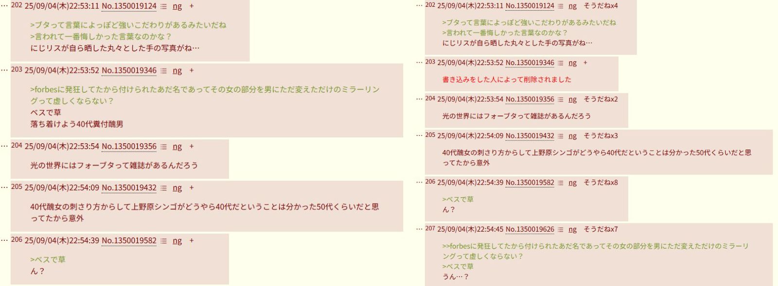 | … | 9126/03/24(火)22:00:32No.1413927327+>40代糞付醜男と造語 |