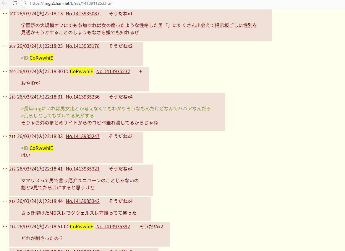| … | 21826/03/24(火)22:19:16No.1413935567そうだねx3>ID:CoRwwhiE |