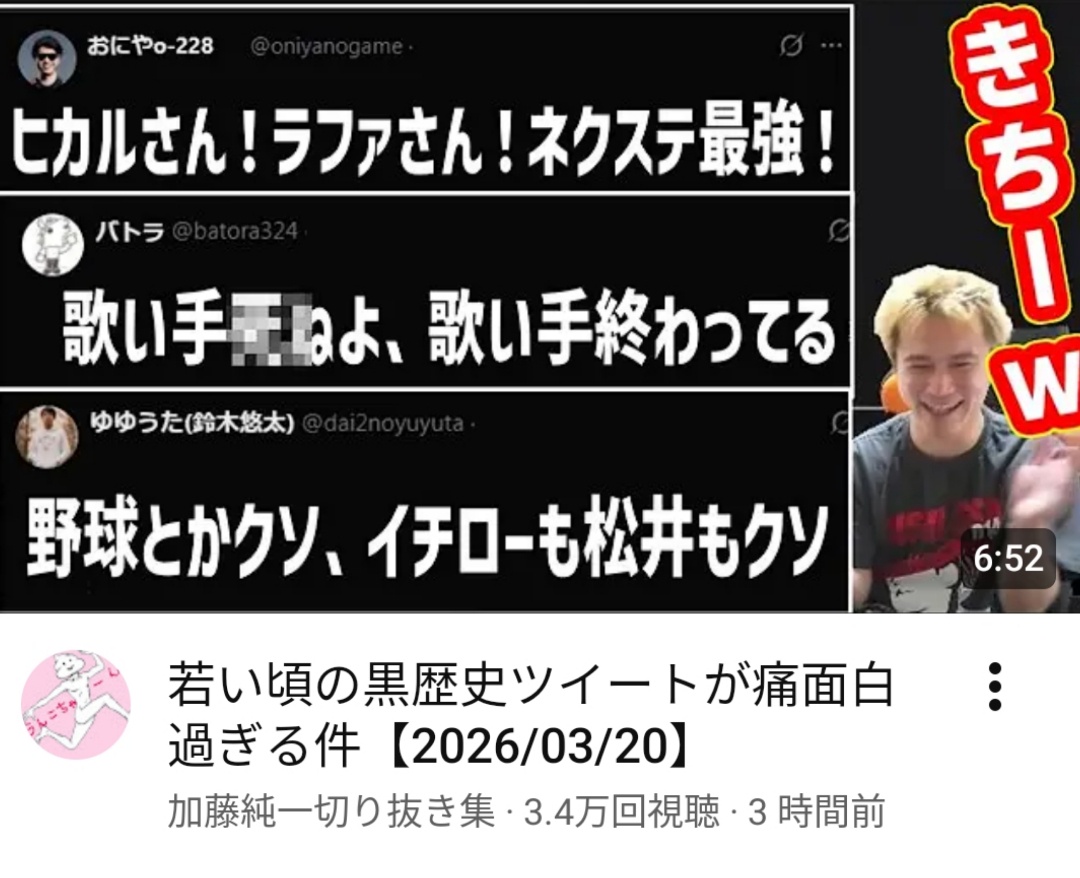 | … | 1226/03/24(火)23:02:05No.1413953432そうだねx5ファンだけがヤバいと言われてるけど普通に本人も差別主義者でヤバいよね |