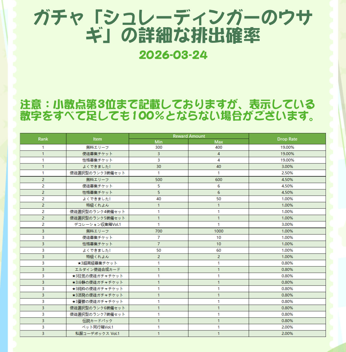 | … | 5126/03/24(火)23:24:12 ID:cGHi59GENo.1413960983+今回は多分リーフガチャ使うまでもなく余裕で200回行くと思うのでリーフ温存する事になるにゃ |