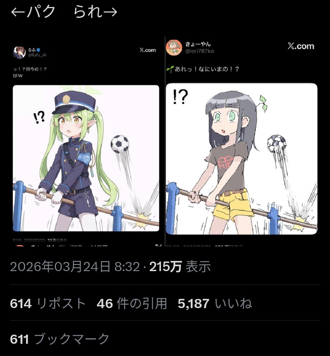 | … | 21526/03/25(水)00:33:57No.1413984820そうだねx3メのAIタグ見ればわかるけど0〜10程度のRTいいねが大半だしな |