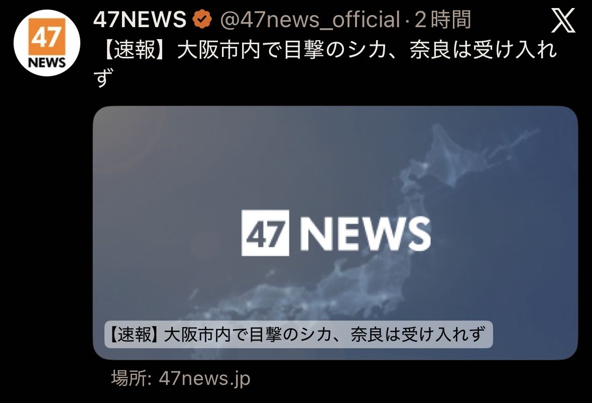 | … | 326/03/25(水)14:38:16No.1414101135そうだねx13奈良から大阪に亡命した鹿か |