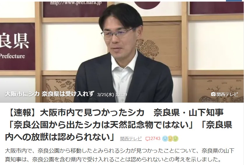 | … | 2726/03/25(水)15:19:31No.1414109068+シカが自分で勝手に奈良県に戻るのはOKらしい |