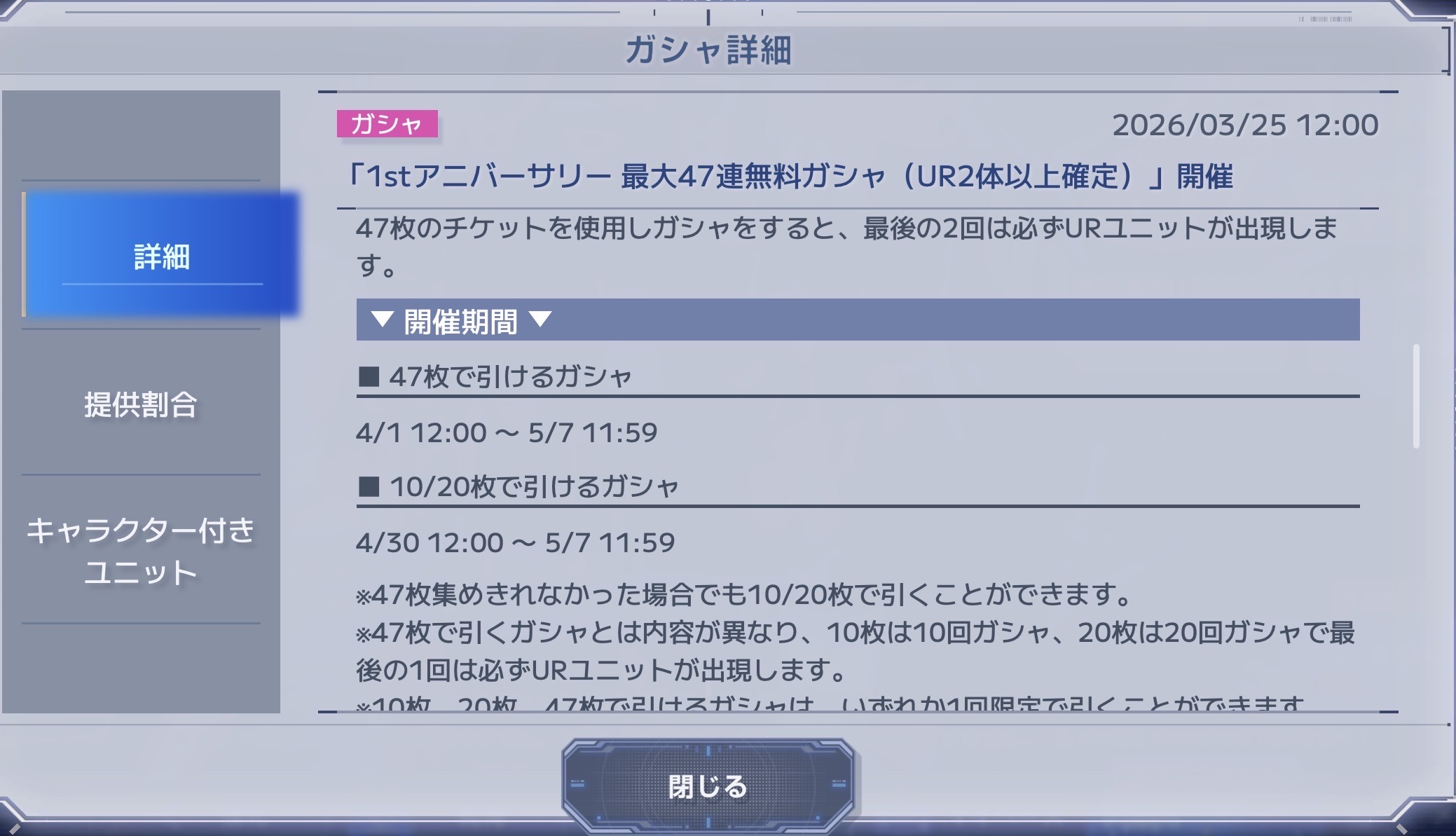 | … | 9626/03/25(水)15:43:49 ID:FlohsQn6No.1414113516+SSRはGガン組入ってるのが地味にありがたい |