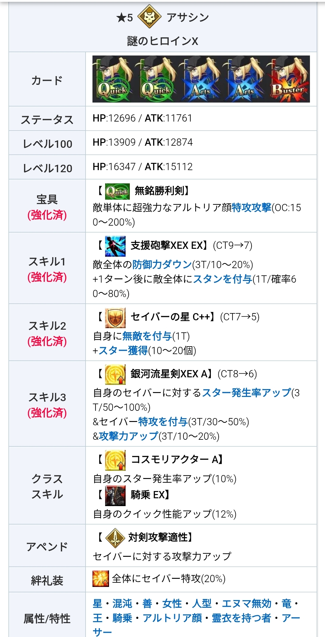 | … | 3726/03/25(水)17:20:22 ID:H7MSgiDUNo.1414131986+X師匠の強化なんてNP50と宝具威力アップとクイックバフ程度しか貰えないと思ってるよ… |