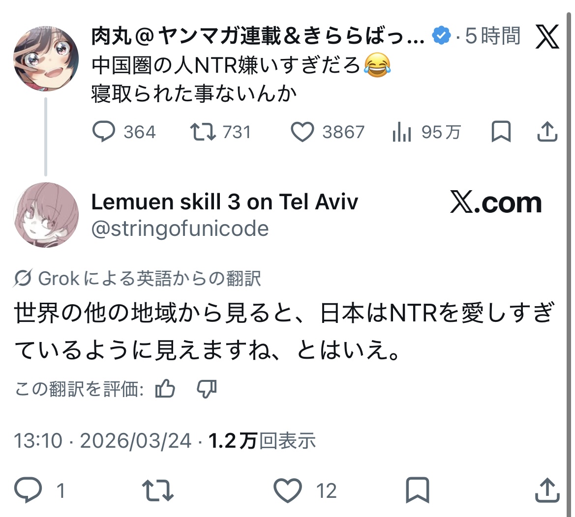 >日本人だけどNTR嫌いだから個人差だよね