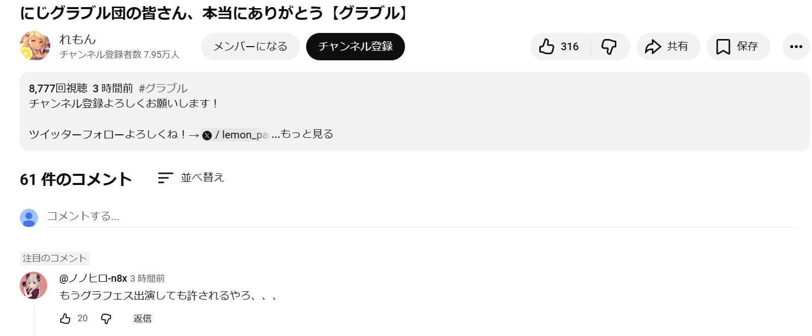 | … | 7626/03/25(水)17:36:41No.1414135784そうだねx1>グラブルYouTuberの動画のコメント欄のスクショでスレが立ってて椅子から転げ落ちた |