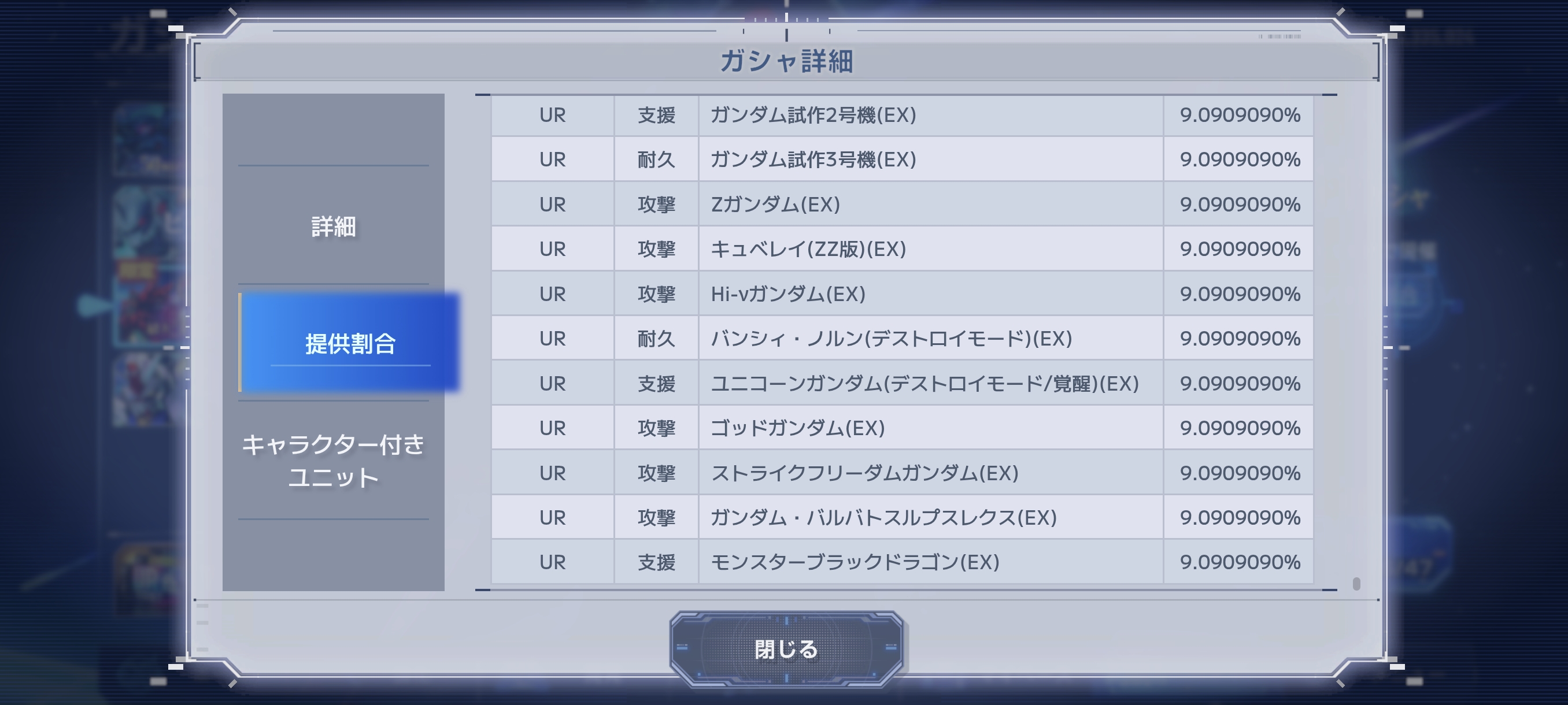 | … | 23526/03/25(水)19:13:15 ID:oQut6U1sNo.1414165670+今回結構ガンダム編成も見かけるからBDも居る |