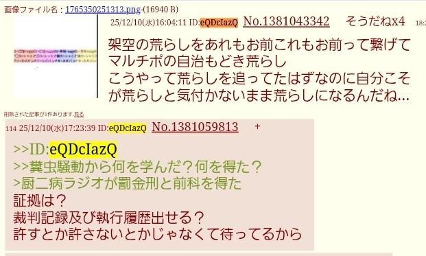 | … | 5026/03/25(水)23:00:54 ID:TWHyzdbENo.1414258590+>>?知らないわからない |