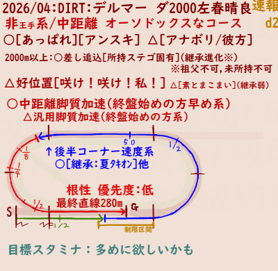 | … | 5826/03/26(木)00:06:04No.1414280273+ダート先行のサポカ編成教えてください |