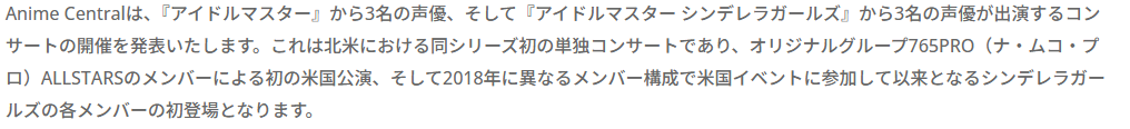 | … | 6726/03/25(水)23:39:18No.1414271514+>https://www.acen.org/the-idolmaster-and-the-idolmaster-cinderella-girls-will-appear-at-anime-central/ |