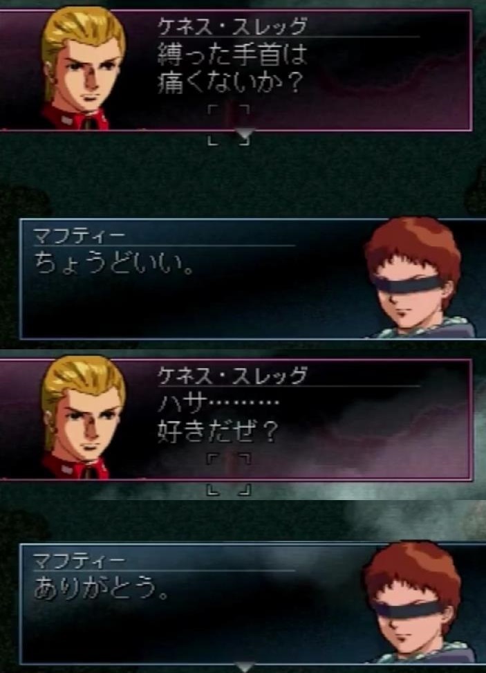 | … | 1726/03/26(木)07:04:29No.1414321208+これから自分が捕らえて極刑になるテロリストの首魁に好きだぜハサっていうことしかできないの最高に富野してるよね… |