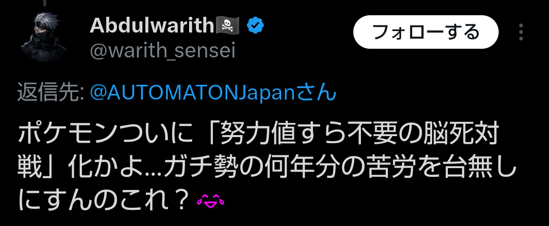 ガチ勢ったって元々脳死でつえーポケモンを脳死構成させて脳死パターン繰り返すだけじゃないですか