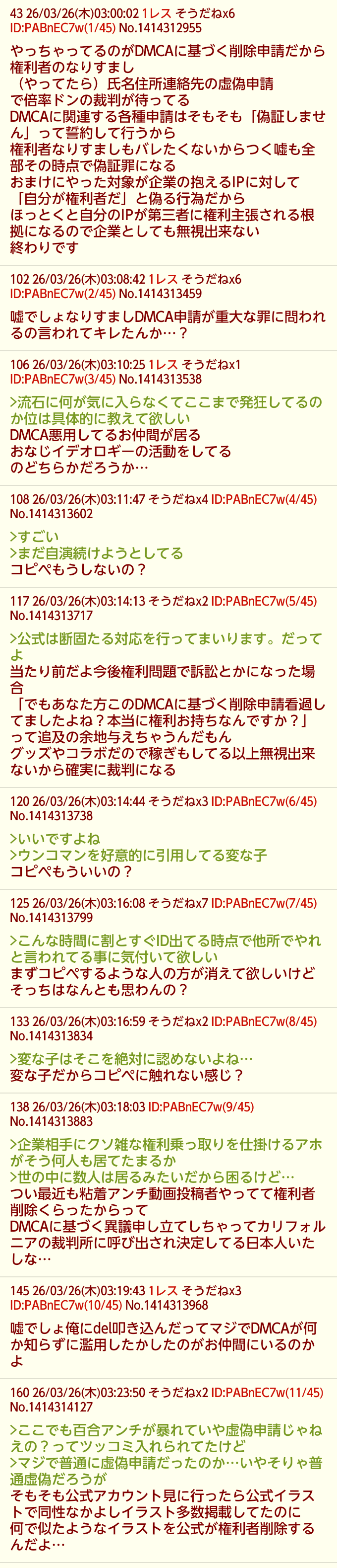| … | 4626/03/26(木)09:26:45No.1414338429そうだねx6裁判所に呼び出された奴の同類がここ荒らしてるから注意しようね |
