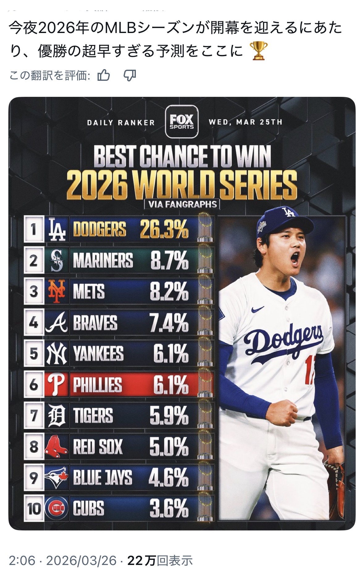 | … | 31026/03/26(木)12:00:07No.1414363983+https://x.com/MLBONFOX/status/2037000326234923085 |