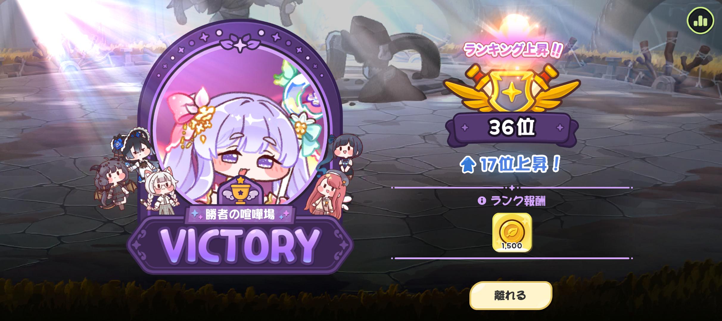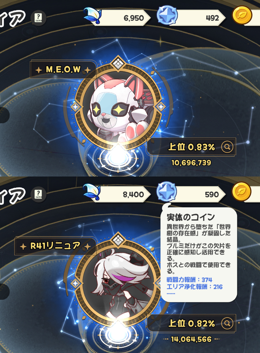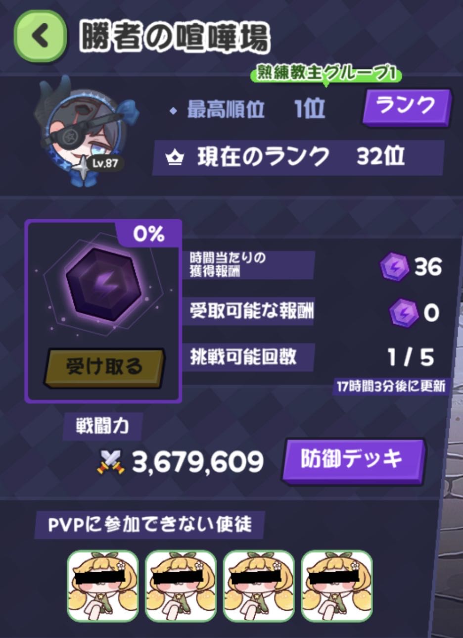 | … | 88426/03/26(木)11:46:11 ID:65GN8oaYNo.1414361280+喧嘩場ギリ50位から弾かれて石割ったけど同編成の戦力下相手に全然勝てず時間切れにゃん |