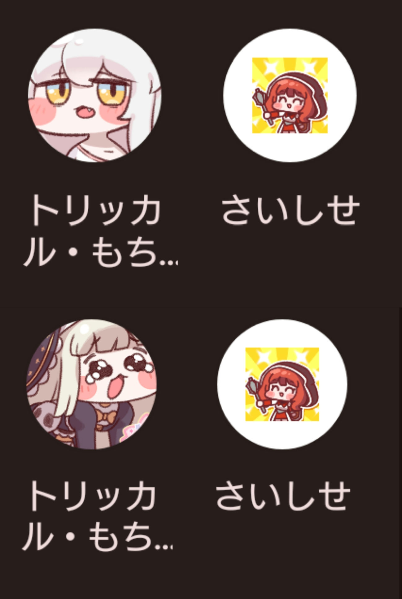 | … | 77626/03/26(木)18:38:47 ID:Ofog4QP.No.1414451888+>アッあのこれはトリッカルっていうめっちゃ可愛いゲームのグッズでアットリッカルっていうのは韓国初のソシャゲで… |