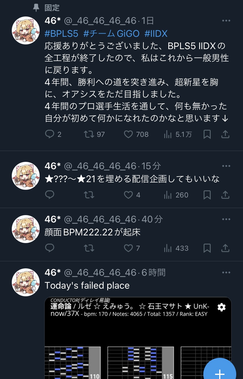 | … | 43026/03/26(木)20:11:04No.1414480817+BMSや楽曲収録の事情よく知らん人が大量に流れてきて会話しづらかったのはある |