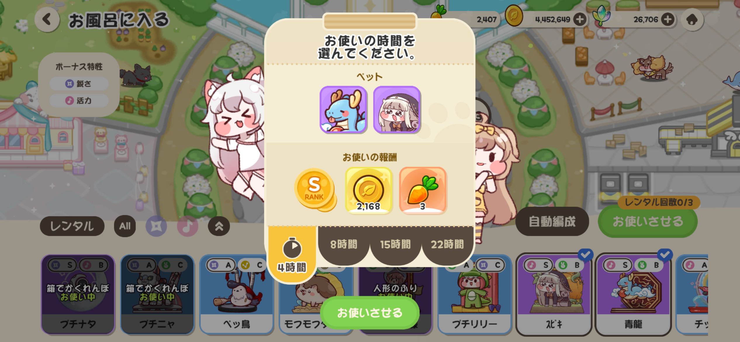 | … | 66426/03/26(木)23:12:30 ID:fPQNozvgNo.1414546452+参考までに聞きたいにゃん現時点でにんじんが1500本近くあるにゃん これ今月はちょっと我慢しておつかいレベルアップで5枠あけるまで粘ったほうが得にゃん? |