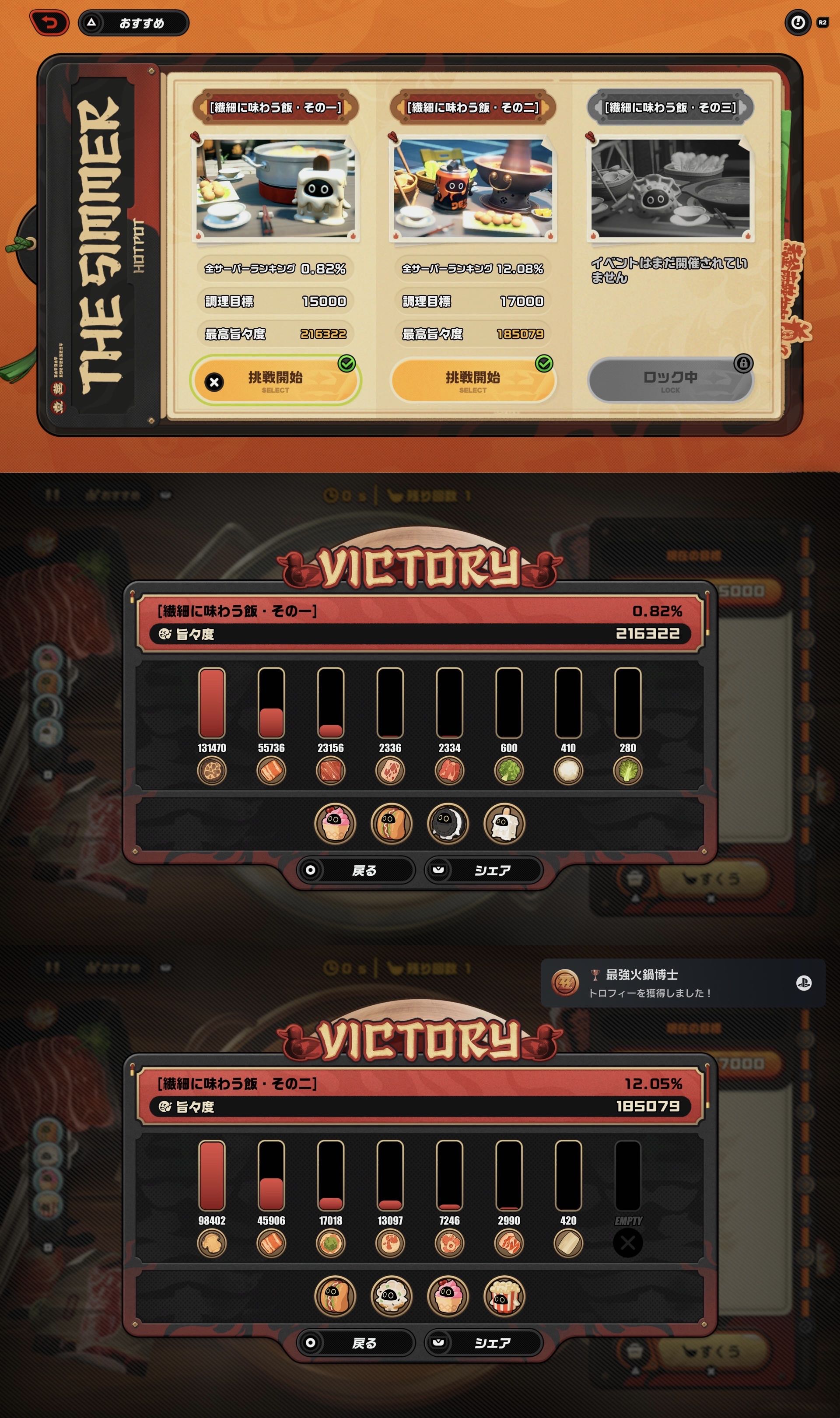 火鍋イベのシナジーですくった食材の点数倍々になっていくの気持ちいいンナ…
