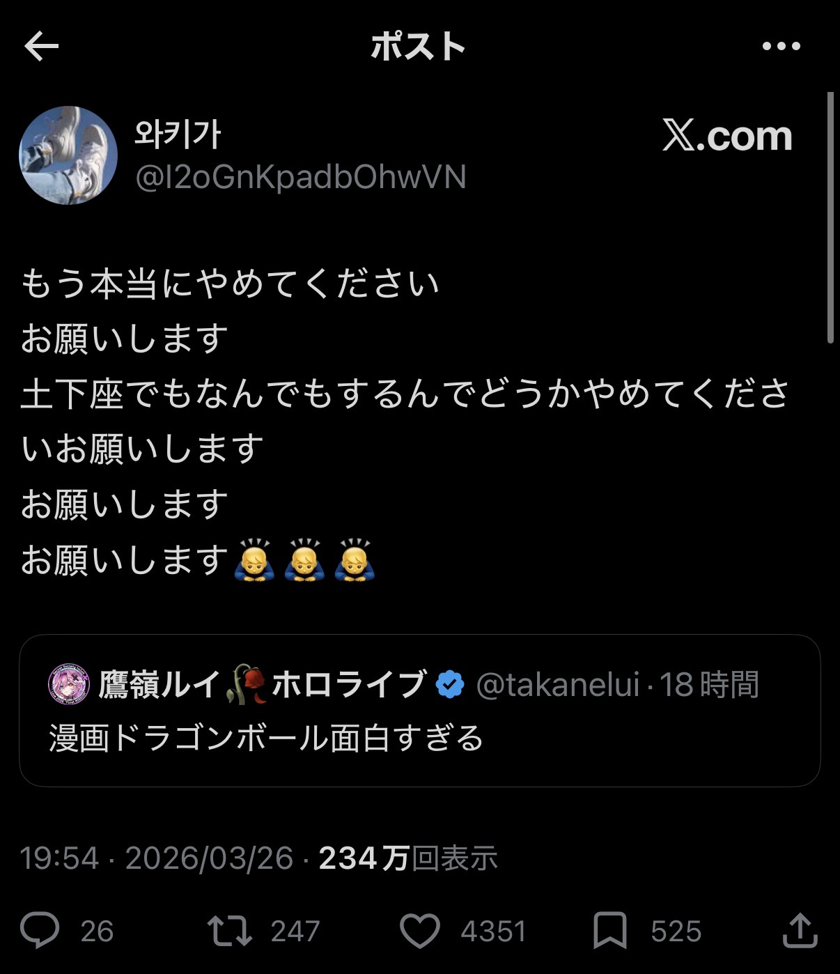 | … | 1326/03/27(金)08:56:46No.1414618856そうだねx25ホロライブが絡むと蛆虫が苦しむならもっとコラボした方がいいんじゃない? |