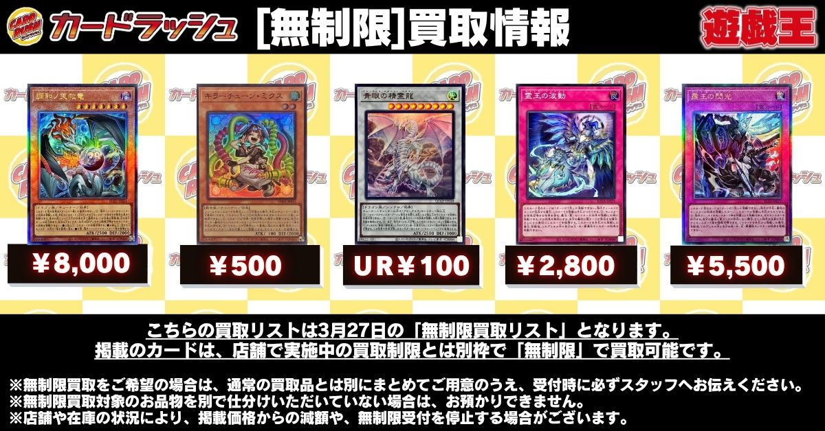 | … | 30226/03/27(金)13:06:37No.1414670415+>7000円で3枚買ったぜ城之内くん! |
