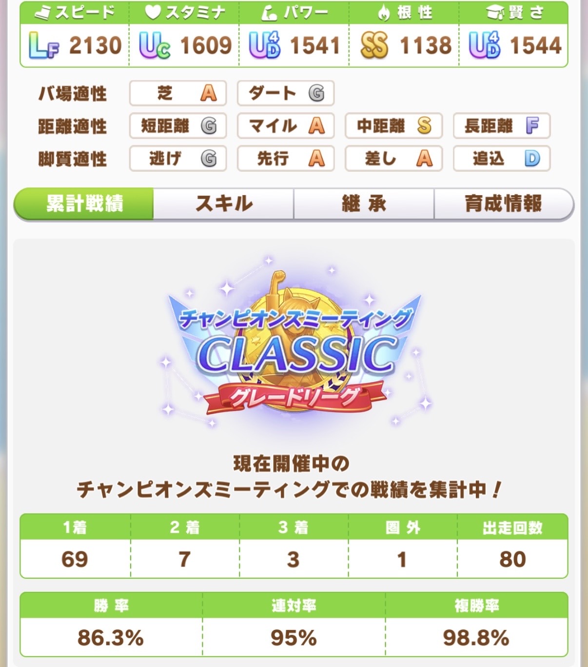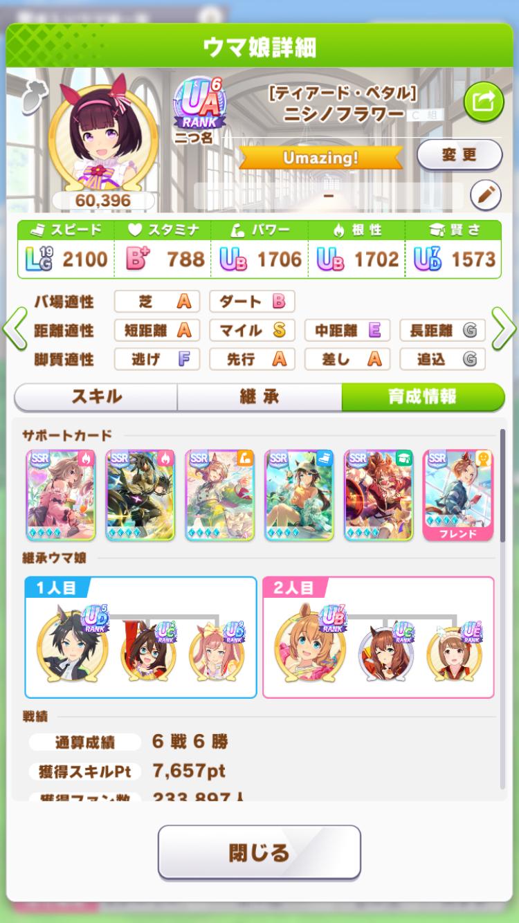 | … | 626/03/27(金)13:30:04No.1414675822+短距離育成でコンセ積むならこの編成かなと思ったんですがスピと賢さが伸び切りませんでした… フラワーさんは相変わらず可愛かったです fu6469298.jpg |