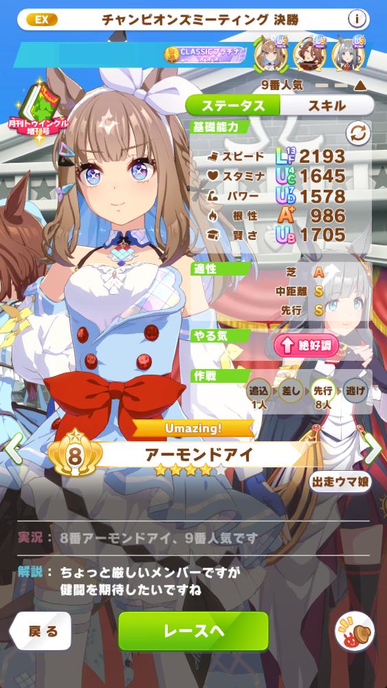 | … | 826/03/27(金)13:30:10No.1414675840そうだねx4アイさんのシナリオで好きな所を言います 新たな伝説となったアイさんに感化されて会長含めたG17勝会のウマ娘ちゃん達がチャレンジャーとしてアイさんに挑みにきたところです |
