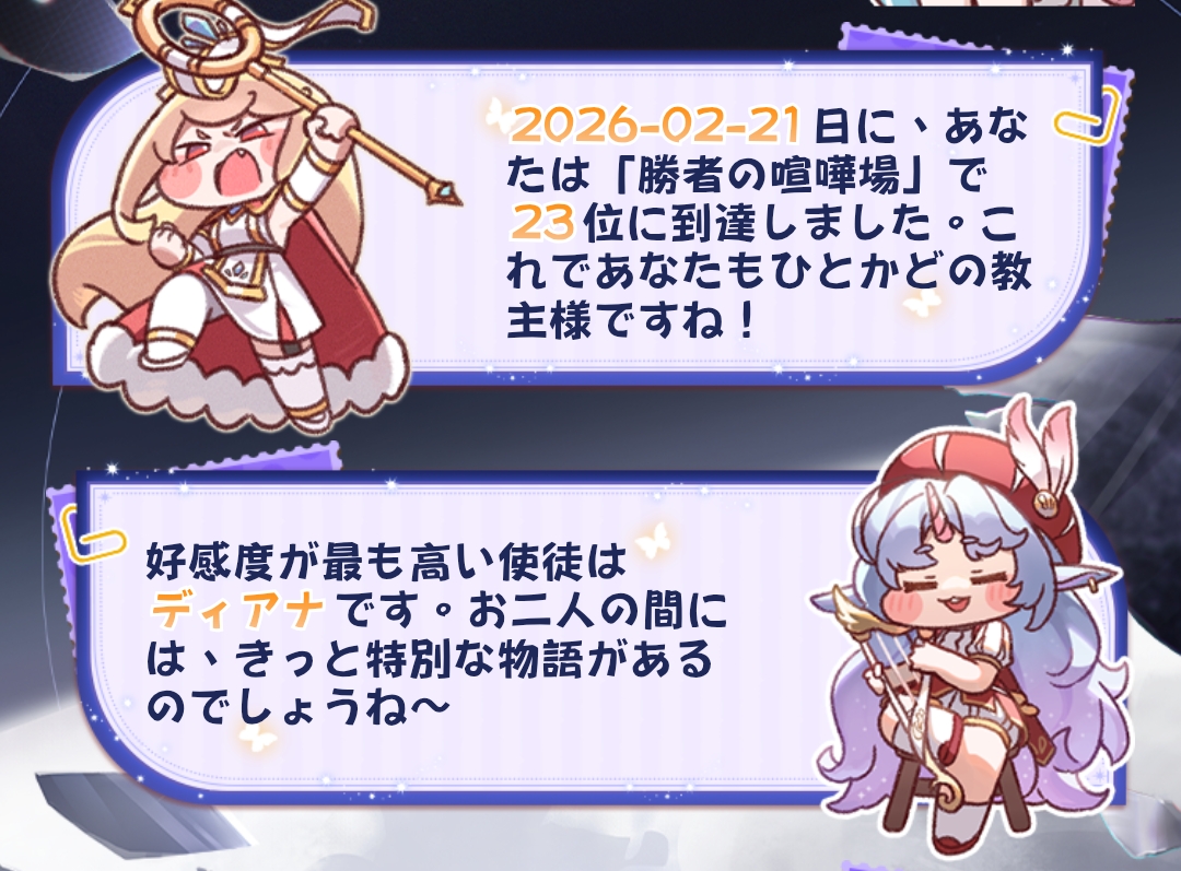 | … | 9726/03/27(金)14:05:23 ID:5/BUywOYNo.1414682782+ランキング実装でミニゲームで勝ちに行く教主も増えてきたにゃん |