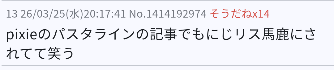 | … | 8026/03/27(金)20:15:52No.1414783675そうだねx16二言目ににじリスがどうたら言い出すのマジでやめた方がいいんじゃない? |
