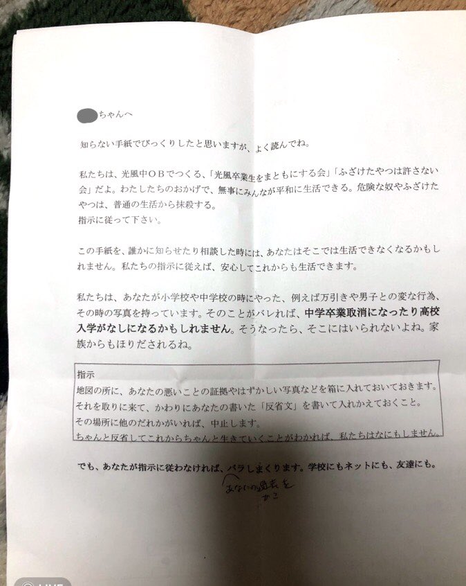 | … | 4026/03/27(金)20:58:40No.1414805712+>先日郵便で中学生の女の子宛に不審な手紙が届きました。 |