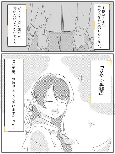 | … | 8326/03/27(金)22:23:12No.1414849134+聞いて後輩ちゃん達!これは徒町の愛する女神さやか先輩の話なんだけどね! |