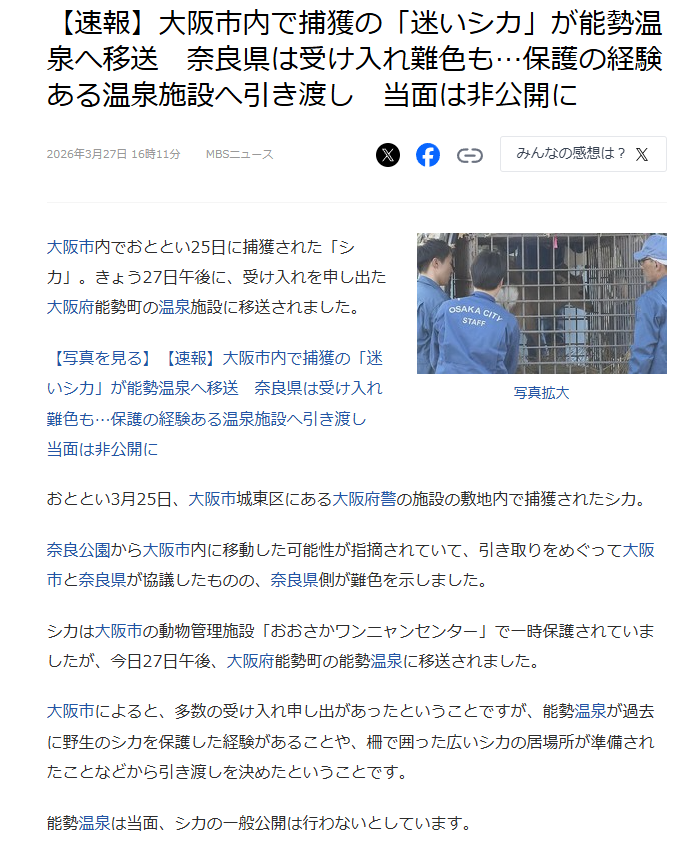 奈良県民だと思うけどこれから先奈良を出て行った鹿を一々奈良に送られたらそれはそれで面倒くさそうだから難色を示すのはわかる