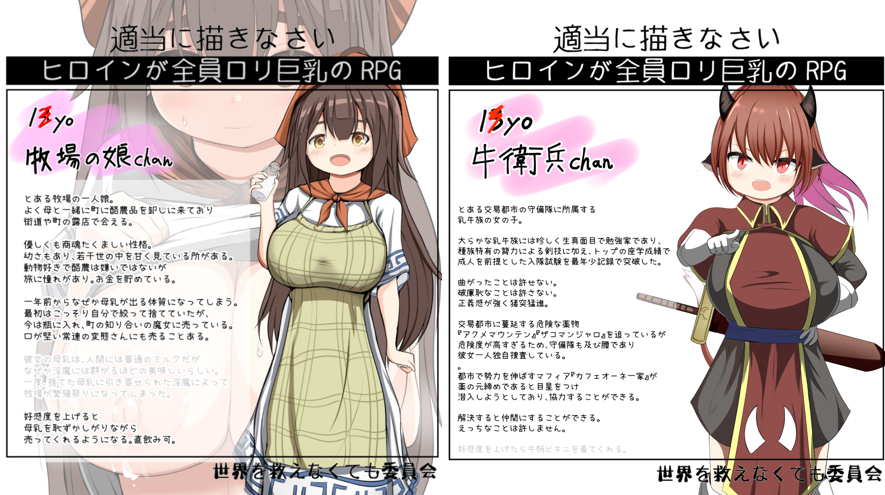| … | 1526/03/27(金)23:47:18No.1414881697+通常でもボテでも立ち絵だと牧場娘changのほうがケツデカそうなイメージある |