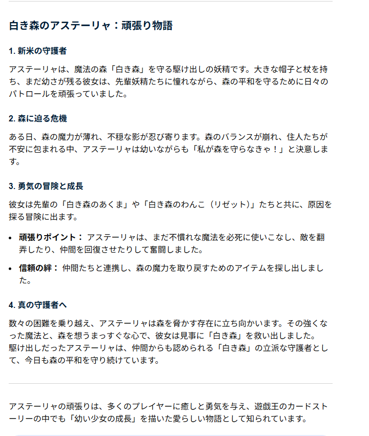 | … | 1826/03/28(土)00:56:09No.1414902370+なんとなくアステーリャちゃんの頑張り物語でググったらAIが知らん話出してきた |