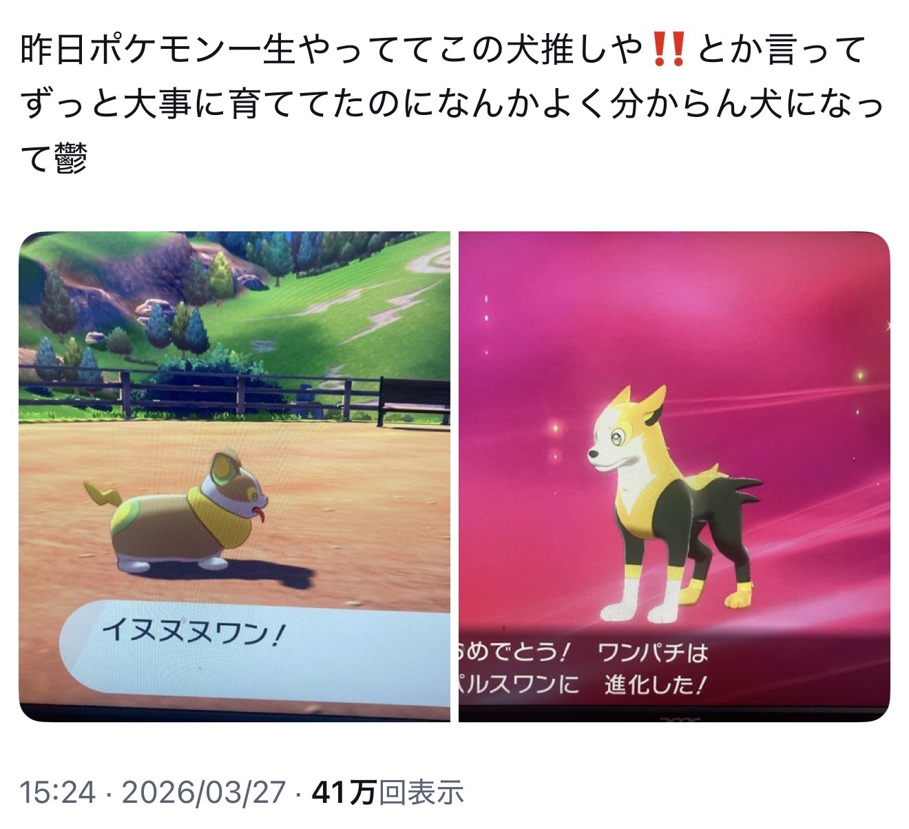 | … | 5226/03/28(土)01:22:54No.1414908182+パピモッチといい犬ポケの進化前の可愛さは異常 |