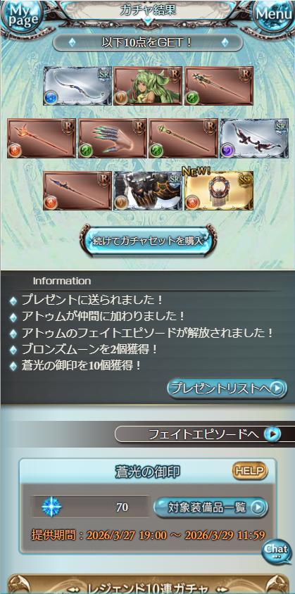 | … | 9726/03/28(土)05:20:12No.1414927372+>アトゥムチャンスはもう明日で終わり? |