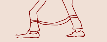 >ズボンの左右が紐で繋がってる