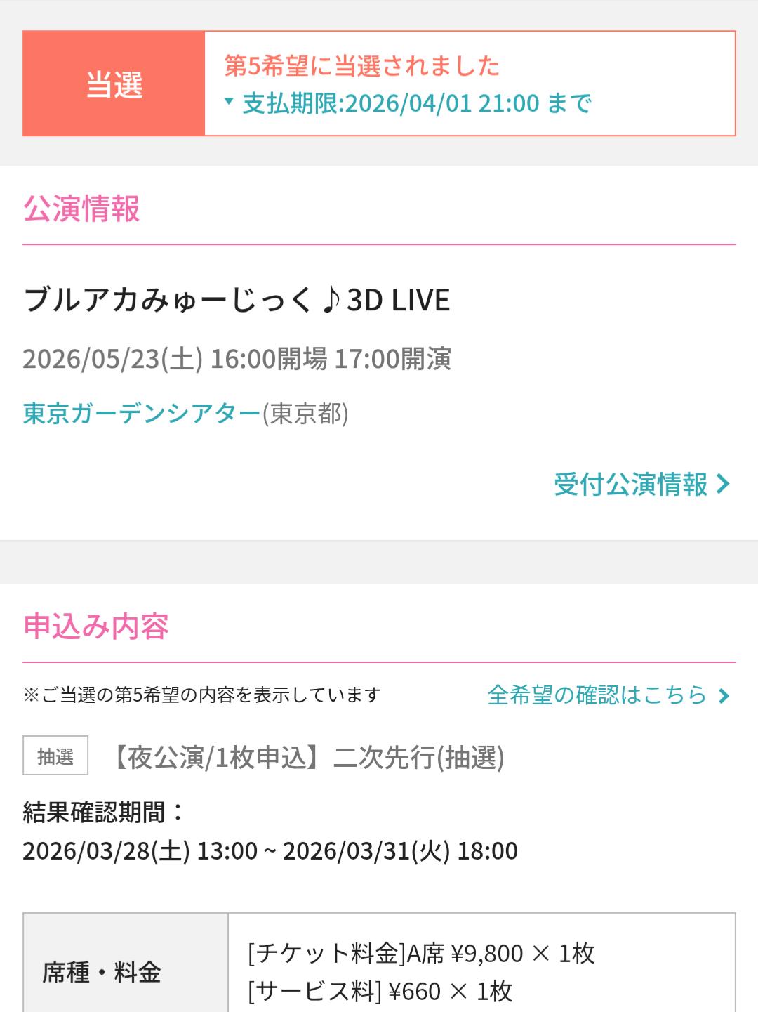 | … | 6026/03/28(土)12:42:13No.1414996478+あっせん今日は確か3Dライブの当落発表だにょ |
